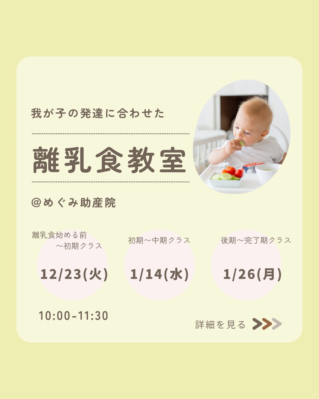 「我が子に合わせた離乳食の進め方」がわかる全3回講座です。